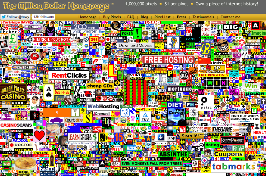 一枚ページのウェブサイトを公開して、少額を払わせて書き込みさせる、というアイデアは、2005年に大ヒットしたミリオンダラーホームページ(The Million Dollar Homepage)を思わせますね。ミリオンダラーホームページの成功を受けて、類似のサイトがいくつも登場していたことをご紹介したことがありますが、今回のexpensive chat もとても似ているように思います。